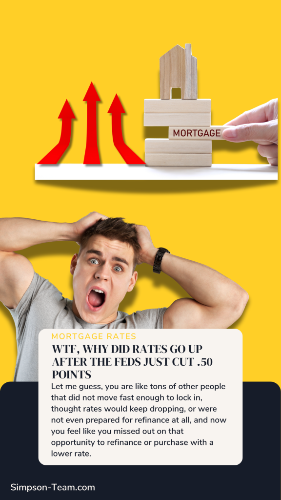 Good news! You are not alone, and there will be another opportunity, of course, to lock in a lower rate on a refinance or a lower rate to purchase a home. I was posting daily and weekly up to the rate cut, saying the best time to lock in would be prior to the rate cut, and I thought rates would go up after the cut. I explain more below.